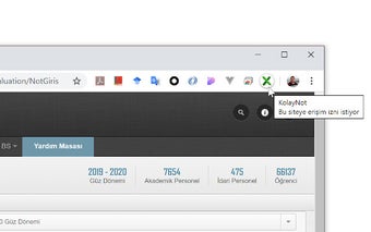 It is important to note that KolayNot is authorized by your browser solely for the purpose of entering grades. It does not have access to other pages of OBS, especially the user login page.